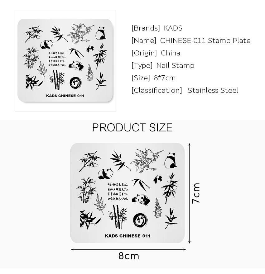 CHINESE 011 Nail Stamping Plate Chinese Style Panda & Bamboo | KADS