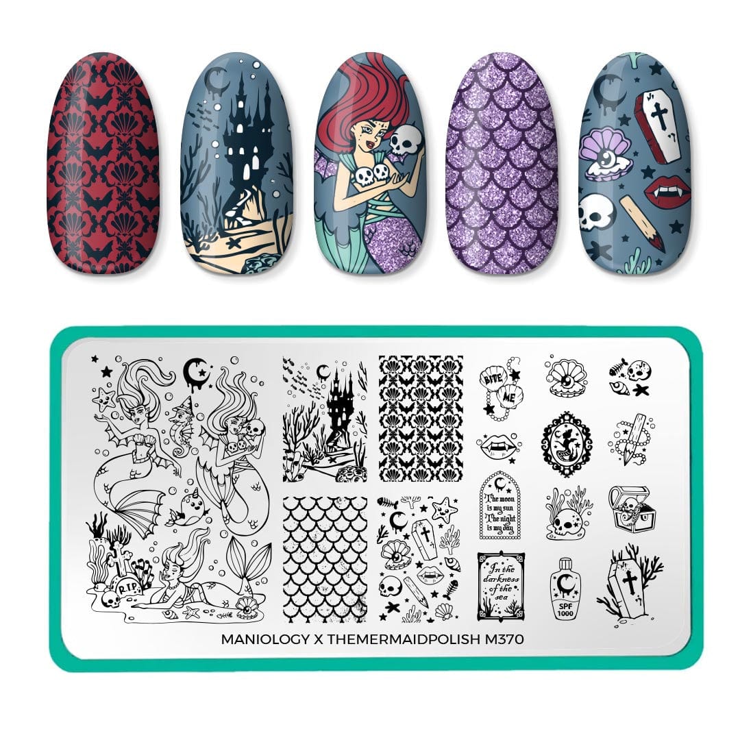 | ¡Sumérgete en las oscuras y misteriosas profundidades del océano! Nuestra placa colaborativa con @themermaidpolish está sumergida en un hechizo submarino inspirado en las atractivas y mortales sirenas del mar. Desde hermosas colas de sirena hasta inquietantes y atrevidos diseños de vampiro, esta placa te dejará encantada. Aplica un simple acento para un toque de misterio seductor o sumérgete en diseños completos para uñas o estilo bufé para una apariencia audaz y oscura.