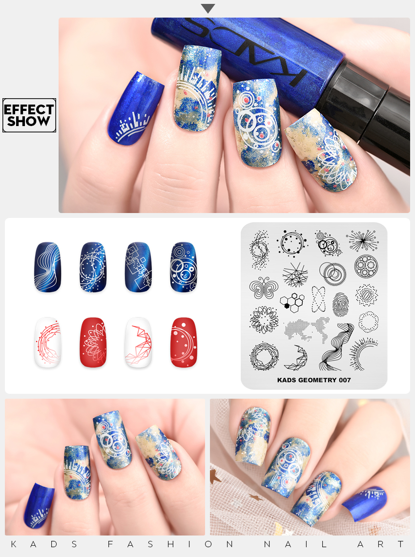 | The word Cyberpunk came to my mind when I saw this plate. The butterfly with heart-shaped wings, fancy gears resembling mechanical watches, and the flowing ribbon really bring me to a future world full of technology and digits. Incorporate them with glittery or cat-eye polishes and the result could not be more stunning! |
