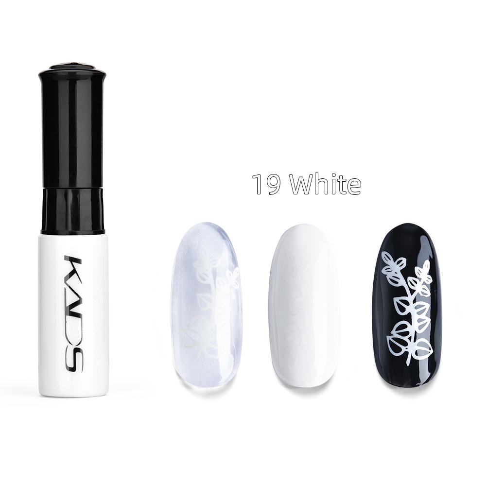| As a perfectly white tone, KADS White Stamping Polish is seriously a must for any beginner or veteran nail artist. This highly pigmented polish is rich enough for a single stroke and makes a great base color to showcase your favorite stamping images. |