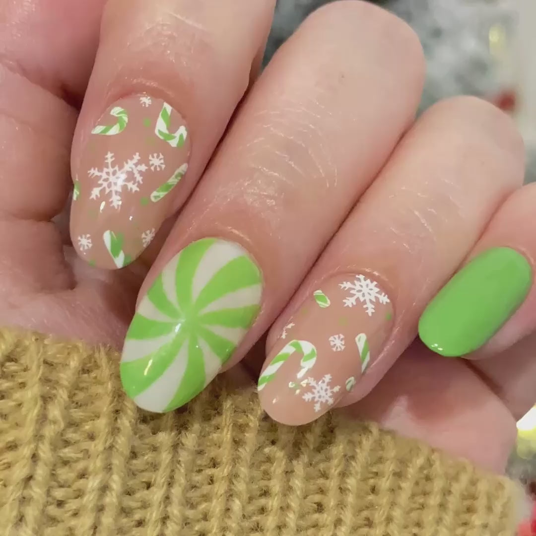 | ¡Únete a la diversión de una celebración llena de dulces con nuestra placa de estampación de bastones de caramelo! Repleta de encantadores diseños de bastones de caramelo y espirales de menta, esta placa es tu aliada para crear unas uñas navideñas dulces. Con patrones para toda la uña y diseños para acentos, ¡puedes mezclar y combinar para lograr unas uñas de bastón de caramelo deliciosamente dulces! Te dará un ambiente divertido y festivo que te dejará emocionada y lista para las fiestas.