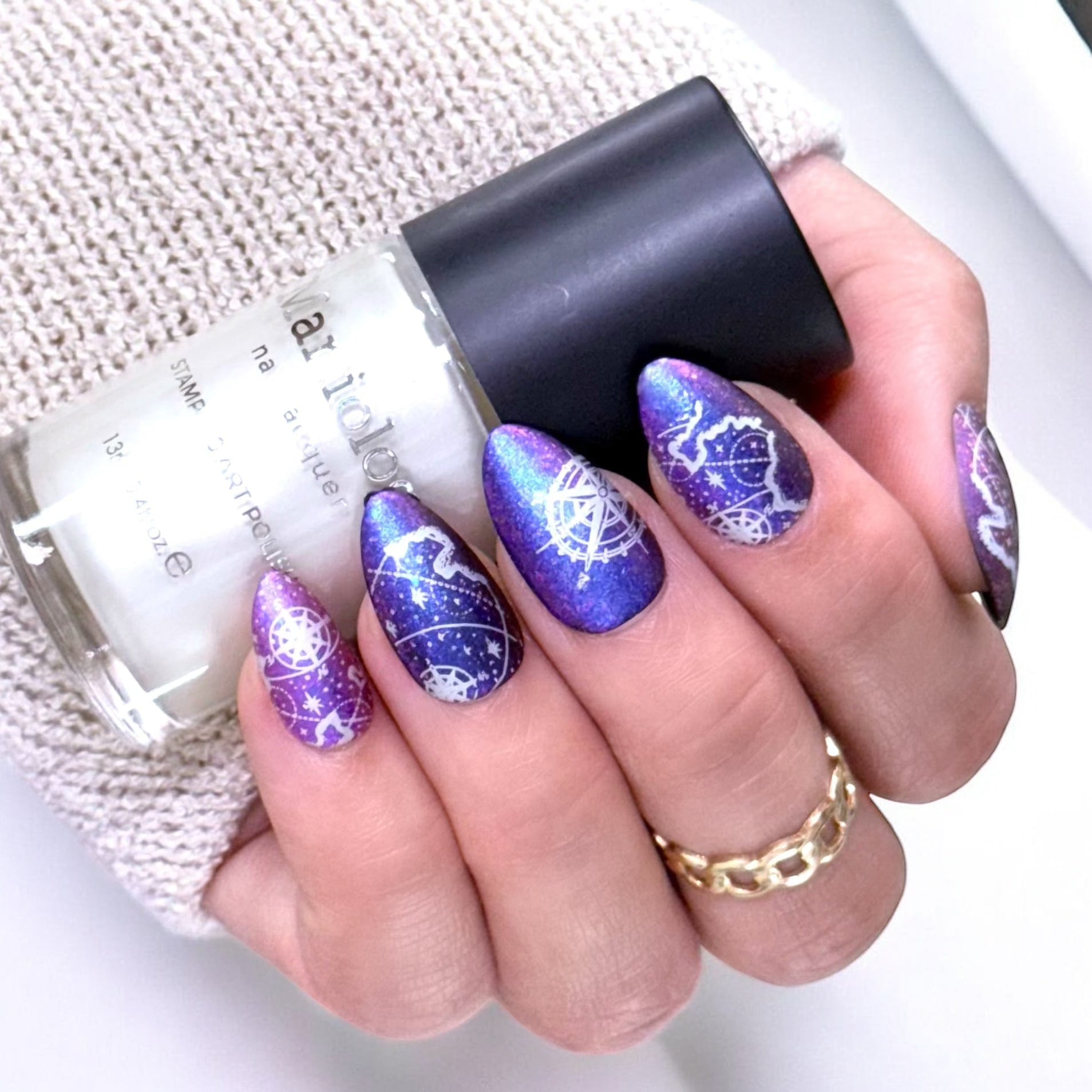 Inspirada en la emoción de la exploración y las aventuras atemporales, nuestra placa de estampación Compass Quest te ofrece diseños clásicos de navegación, incluyendo rosa de los vientos, mapa del mundo, puntos cardinales, líneas de cuadrícula y números de grados de brújula, para crear atrevidas uñas aventureras que expresan tu espíritu explorador. Esta placa es ideal para capas creativas y la combinación de mapas, líneas de cuadrícula y detalles de navegación. La aventura está a un sello de distancia —¿a dónde te llevará tu manicura?