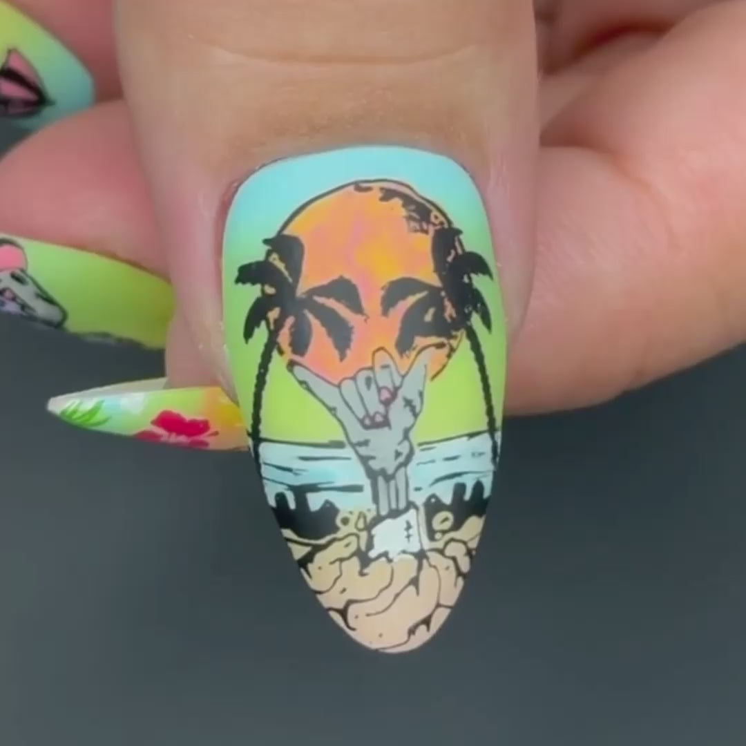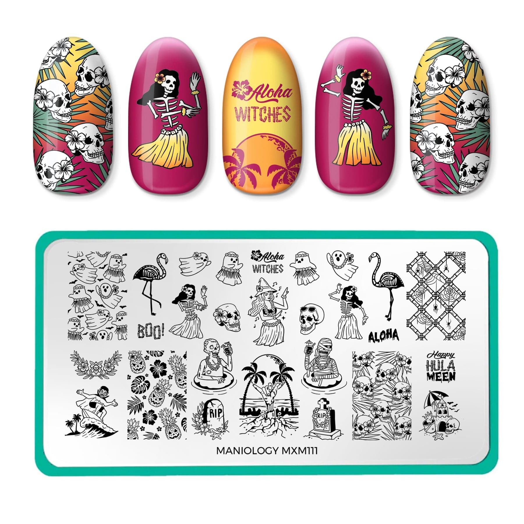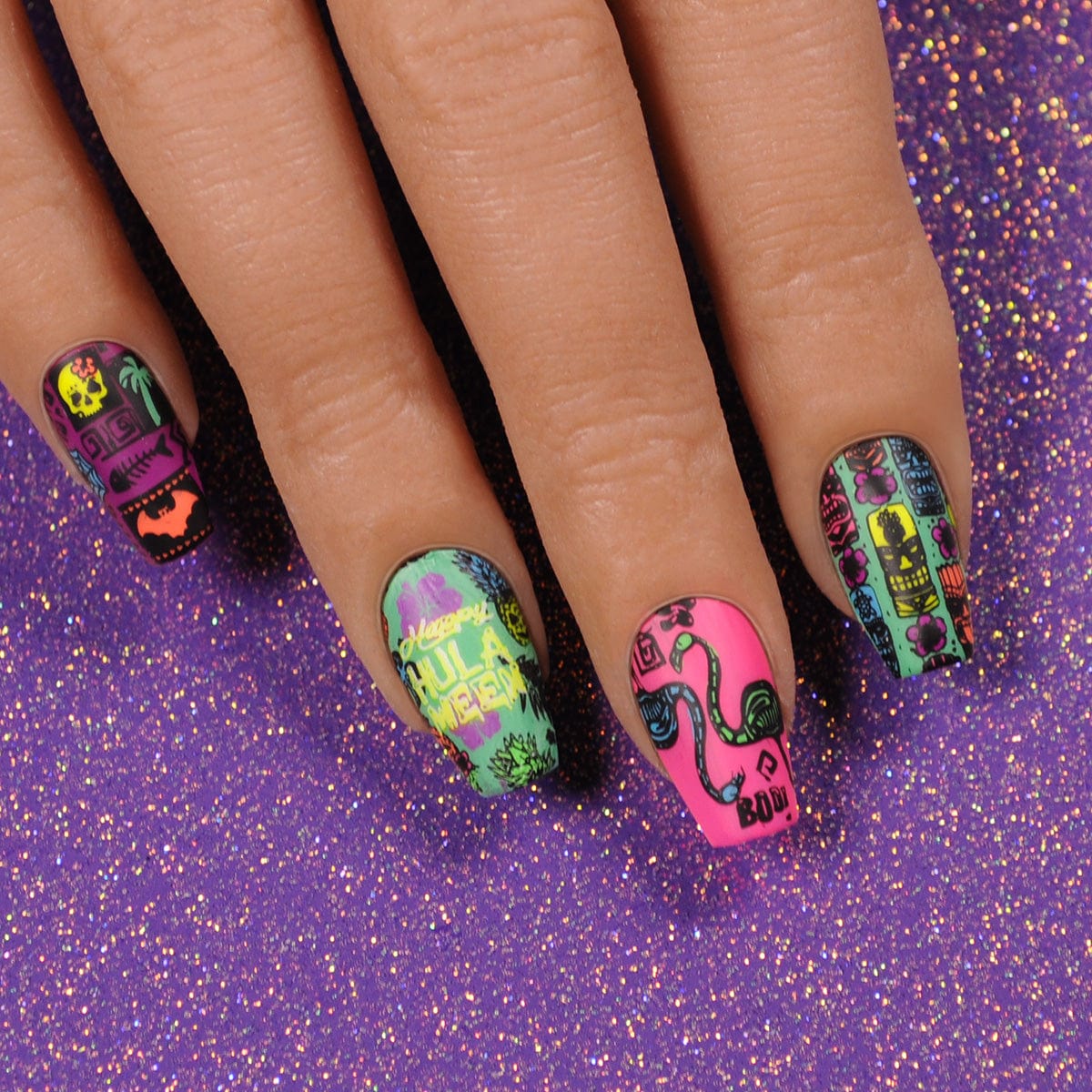 • **LUAU MORTAL:** Dale a tu manicura un cambio de imagen tropical terrorífico. • **CREATIVIDAD INFINITA:** ¡Las posibilidades de arte de uñas son infinitas con solo una placa de estampado para uñas y tus esmaltes favoritos! • **ARTE DE UÑAS FÁCIL:** Simplemente raspa, estampa y deslúmbrate con tu nueva y hermosa manicura. |