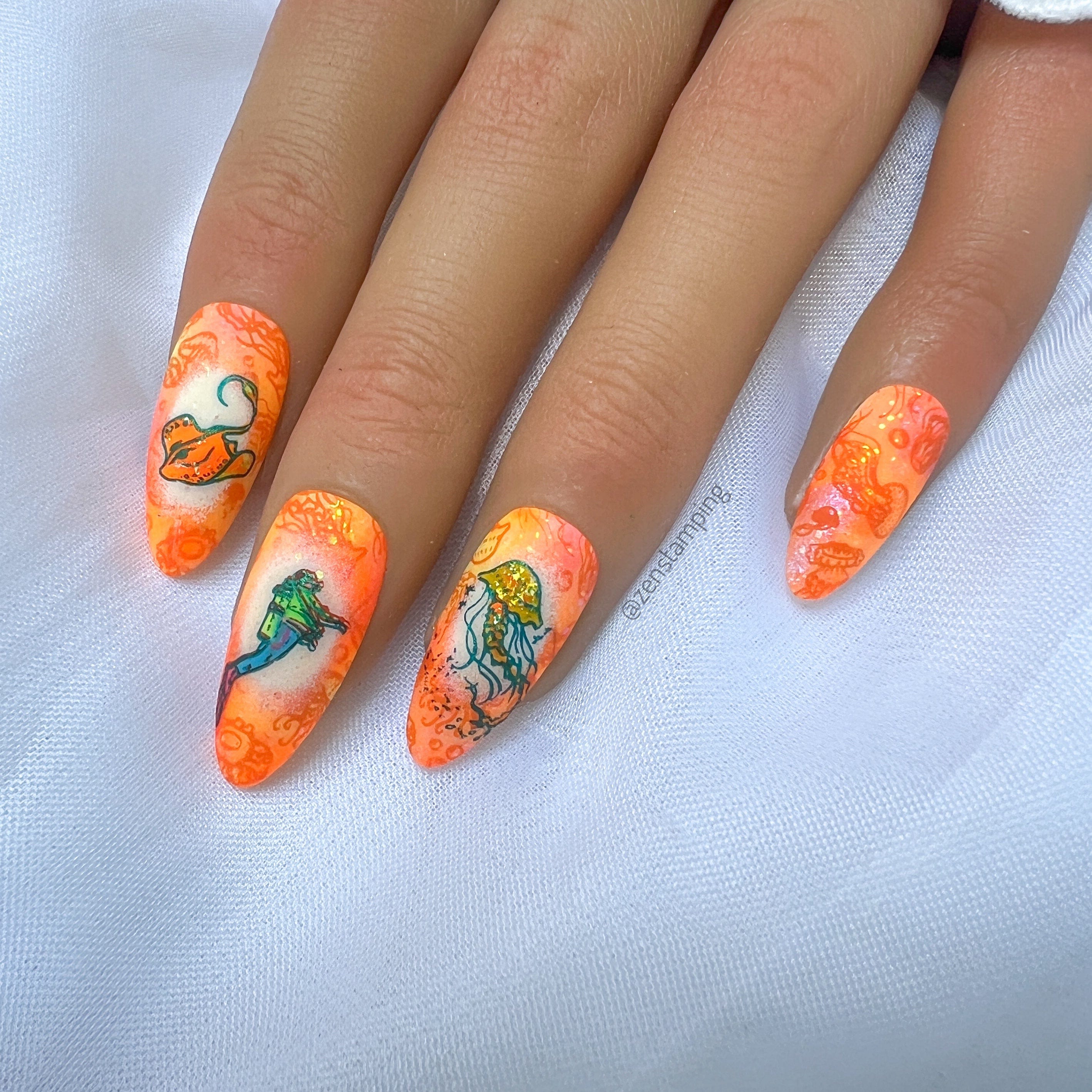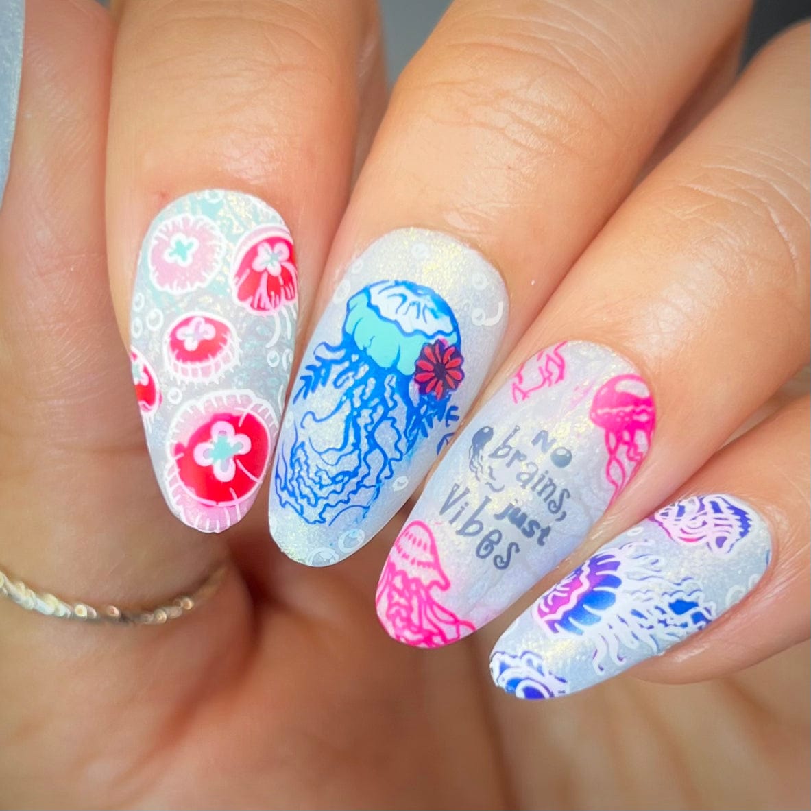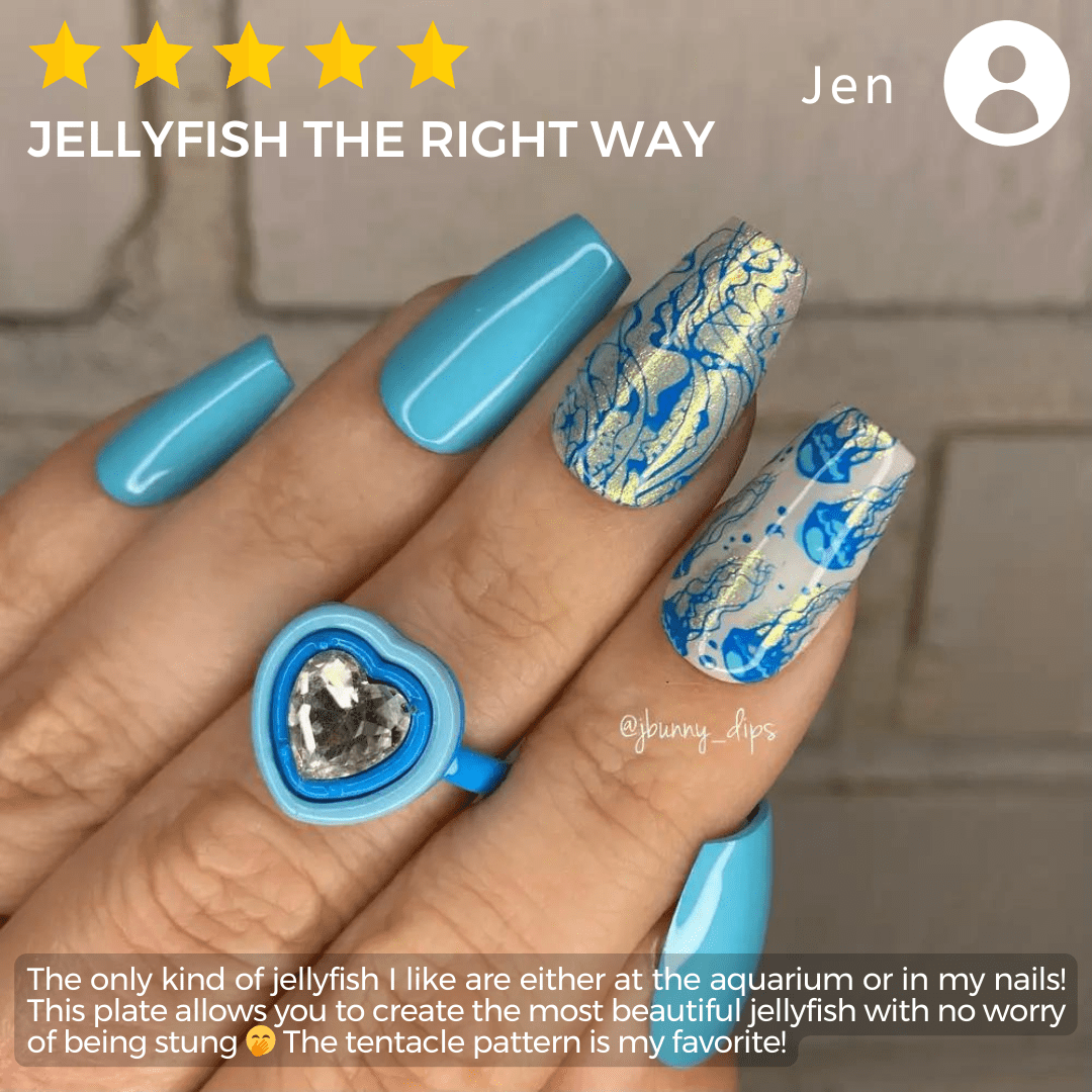 | Nuestra placa de estampación de medusas te invita a sumergirte de lleno, ¡sin necesidad de snorkel! Embárcate en una aventura acuática con una variedad de diseños de medusas caprichosos y encantadores. Desde especies de medusas hasta diseños completos para uñas, cada uno brilla con su propio encanto único. Sumérgete en la magia del mar creando unas uñas verdaderamente cautivadoras, dejando un rastro de belleza hipnótica. • **MANICURA MARINA:** Explora las misteriosas profundidades con un nail art de medusas tan encantador como el mar. • **CREATIVIDAD INFINITA:** ¡Las posibilidades de nail art son infinitas con solo una placa de estampación y tus esmaltes favoritos! • **NAIL ART FÁCIL:** Simplemente raspa, estampa y deslúmbrate con tu nueva y hermosa manicura. |