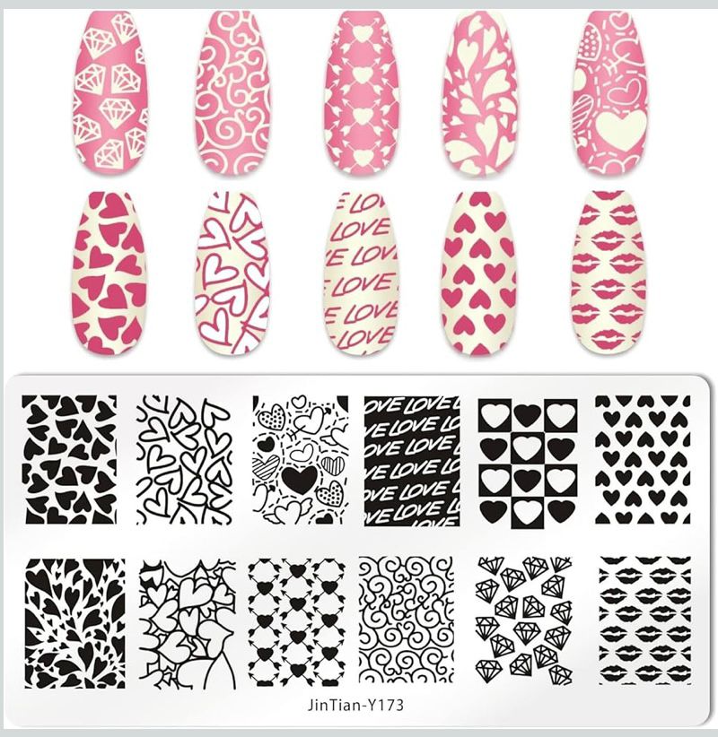 Placa Stamping de Uñas Love Patterns Mix (corazones & besos Y173) | JinTian