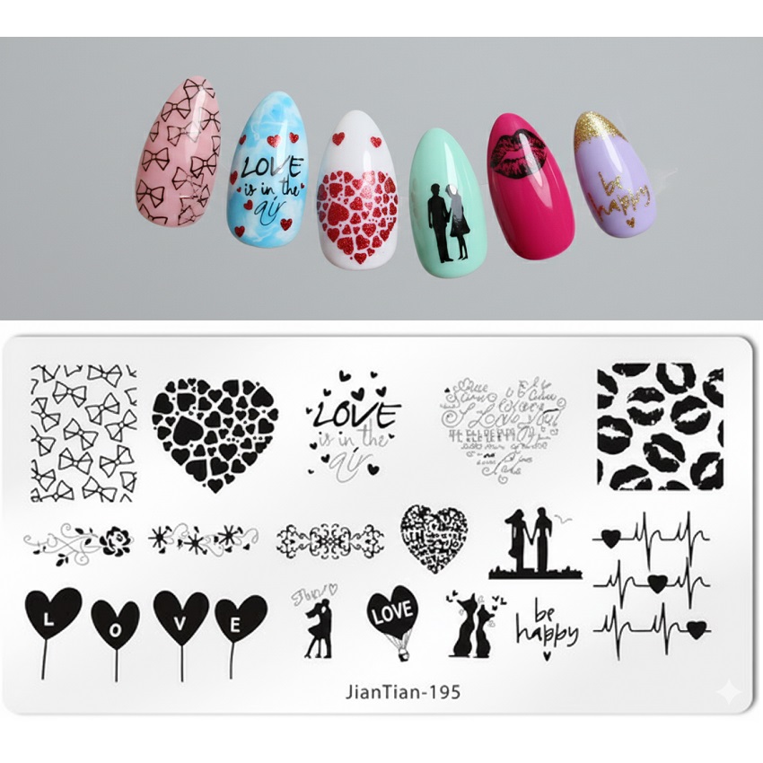 Amor en todas sus formas ❤️🔥. Corazones, latidos, parejas y símbolos que representan conexión y emoción. Una placa muy versátil que funciona tanto para diseños románticos como para looks modernos con significado. Ideal para sets temáticos o detalles protagonistas.