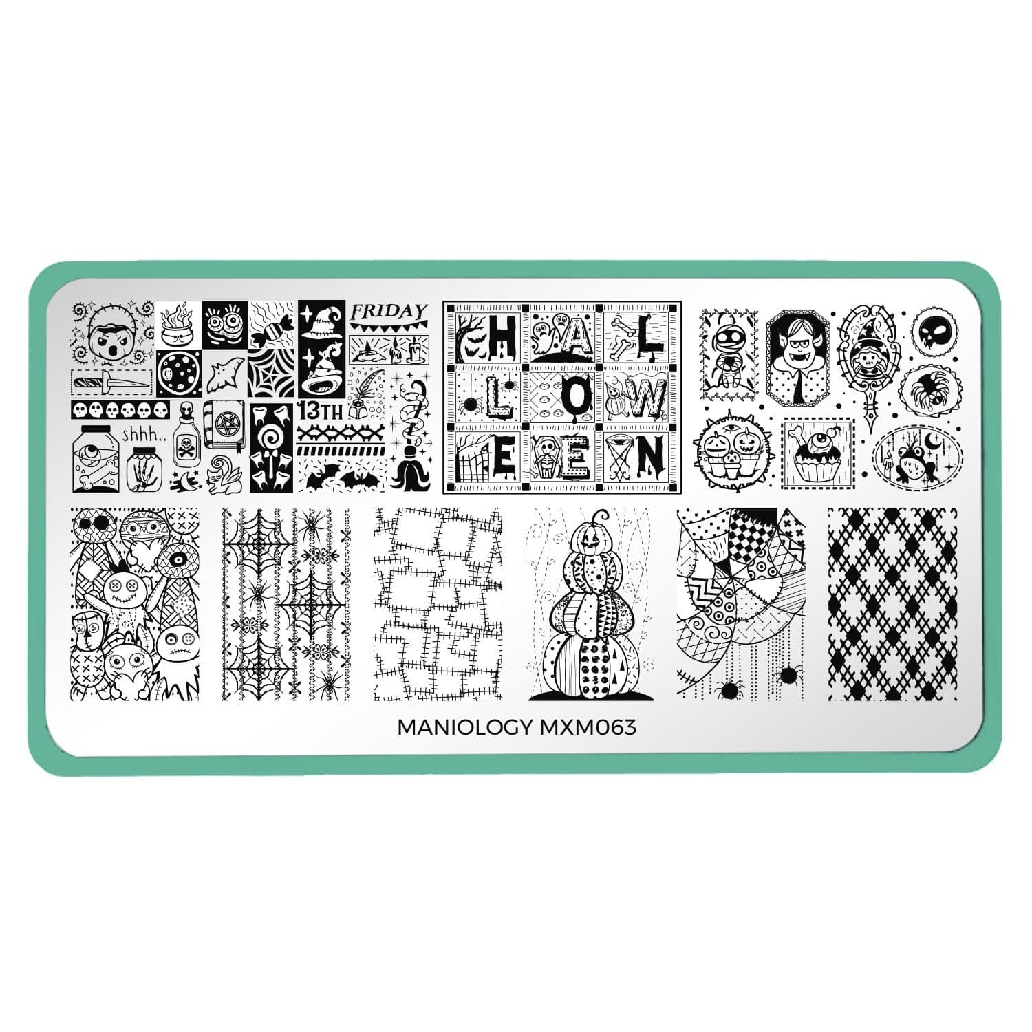 ¡Con cuidado… ¡hay hechizos en cada puntada! Bewitched Quilt es una placa de estampación para Halloween que entrelaza la brujería clásica con un terror artesanal. Con muñecos vudú cosidos, frascos de pociones, sombreros de bruja, murciélagos volando, arañas gateando, inquietantes cuadros de colcha e incluso tenues telarañas, crearás un ambiente de Halloween de lo más auténtico en tus uñas. ¡Comienza a tejer tu hechizo con tus colores favoritos y el esmalte de uñas que prefieras!